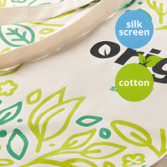 Además, ofrecemos opciones de personalización para imprimir tus diseños exclusivos en la bolsa de algodón. No es posible combinar diseños de impresión en serigrafía y diseños con impresión digital en estas bolsas.