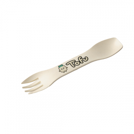 Cubierto tres en uno: función de cuchara, cuchillo y tenedor. Reutilizable y por lo tanto, lavable.  rHIPS.b es un nuevo polímero revolucionario...