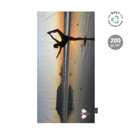 Toalla absorbente de línea sostenible. Fabricada en RPET de 310g/m2, elaborado a partir de plástico reciclado para así fomentar la reutilización...