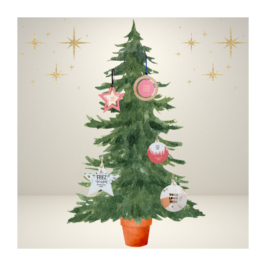 En Promoeco, ofrecemos cinco formas diferentes para hacer tu adorno perfecto, adaptándonos a tus necesidades y preferencias. Entre las formas más populares se encuentran la estrella y la bola, dos formas clásicas que aportan un toque especial a cualquier decoración navideña.