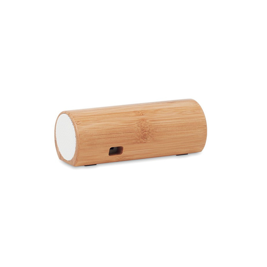 Altavoz inalámbrico con carcasa de bambú. Incluye una batería de 2000mAh recargable. Su tiempo de reproducción es de 4 horas.