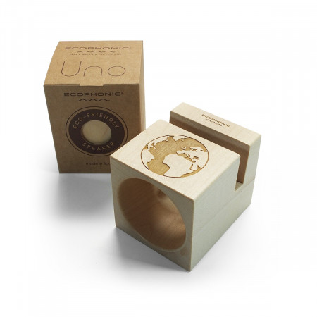 El altavoz ecológico UNO está preparado para que lo puedas llevar a todas partes. Hecho de madera, favoreciendo así a la eliminación del plástico. Práctico y original, amplifica el sonido con mucha calidad. Se presenta en una caja de cartón.