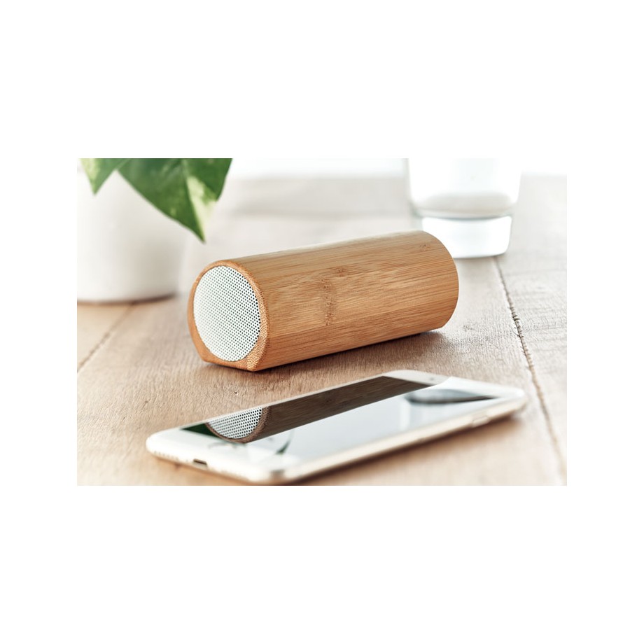 MO6219-40 - Altavoz estéreo inalámbrico 5.0 en ABS con carcasa en madera de bambú. Esteelegante altavoz portátil le dará a tu hogar u oficina un aspecto naturalgracias al bambú y al ABS blanco en los laterales. Es compacto y fácil de llevarcontigo. Con la batería recargable de iones de litio de 2000 mAh, puedesdisfrutar de tu música o podcasts favoritos durante aproximadamente 4 horas. Ensolo 3 horas, el altavoz estará completamente cargado nuevamente y listo para lapróxima fiesta. Datos de salida: 4 Ohm, 5Wx2.