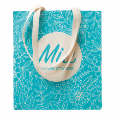 Confeccionada con algodón de alta calidad y diseñada para adaptarse a tus necesidades, cuenta con unas  dimensiones  de 38x42cm, proporcionándote mucho espacio para guardar tus artículos. Sus asas largas de 70x2cm te permiten llevarla al hombro con total comodidad, liberando tus manos para otras tareas.