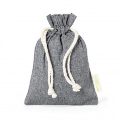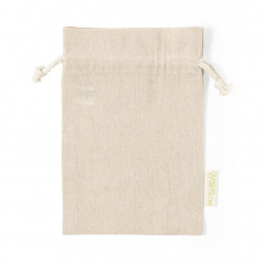 Bolsa de línea nature en resistente material 100% algodón reciclado GRS de 130g/m2. Certificación GRS (Global Recycled Standard / Estándar de Reciclaje Global), que garantiza el origen reciclado del material usado para fabricar el producto. Cierre de cordón de algodón y acabado cosido.