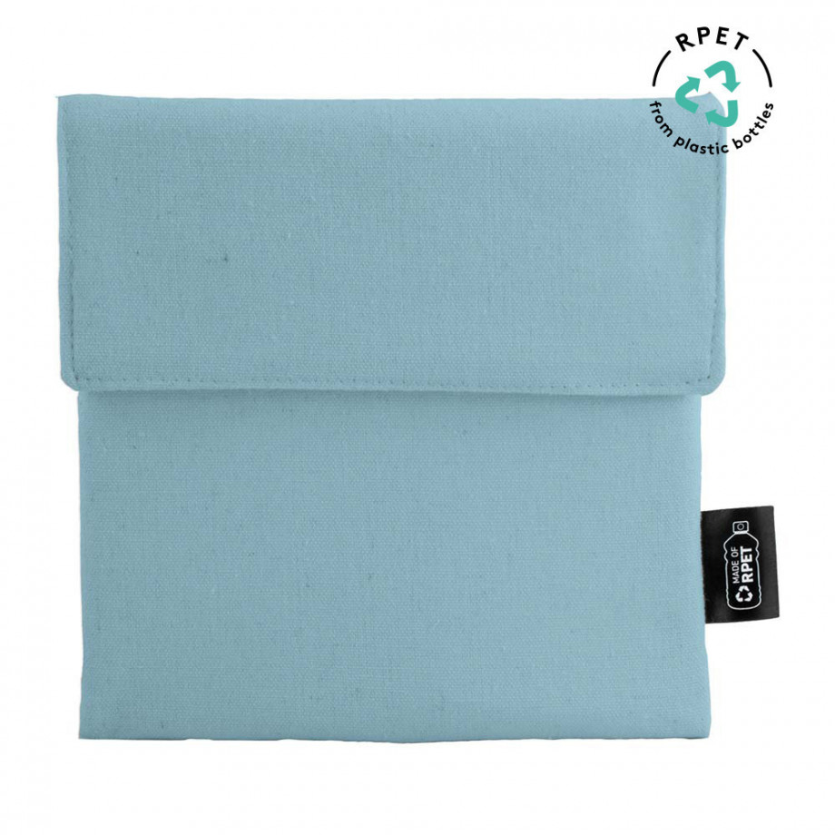 Bolsa portabocadillos de RPET y laminado interior de PEVA con cierre de velcro.