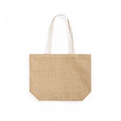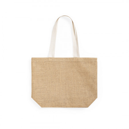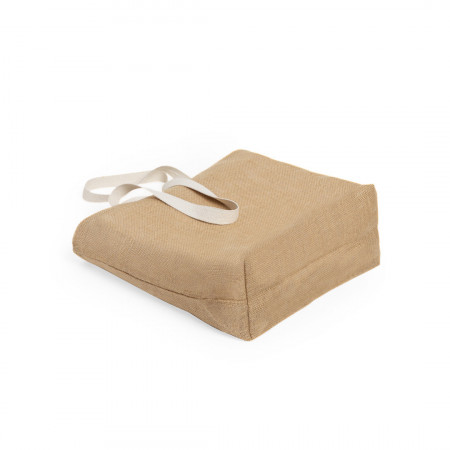 Bolsa de línea nature en resistente yute (250g/m2). Con asas de algodón largas en color natural y reforzadas. De acabado cosido, con fuelle en la base y resistencia hasta 8kg de peso.