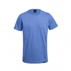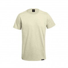 Camiseta de línea nature unisex para adulto. Fabricada en material 100% algodón reciclado con efecto jaspeado de 150g/m2 y disponible en colores natural, negro, rojo y azul. Distintivo algodón reciclado en etiqueta y disponible en tallas S, M, L, XL, XXL.