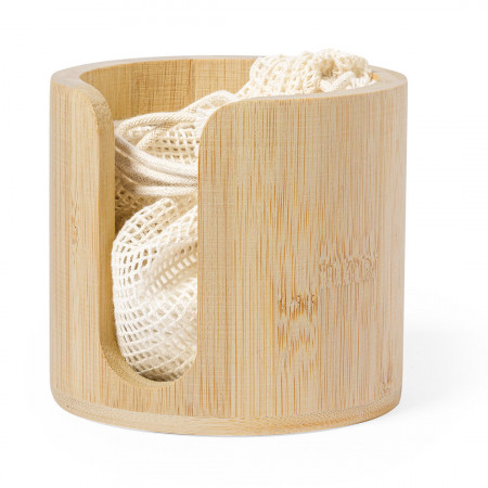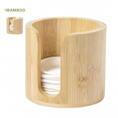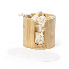 Dispensador de discos desmaquíllantes de línea nature, fabricado en bambú para así fomentar el uso de materias primas naturales. Incluye 10 discos de algodón reutilizables y bolsa de lavado. Presentado en caja individual de diseño eco.