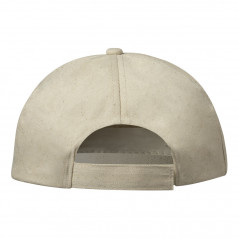 Gorra de línea nature. 5 paneles en algodón orgánico de suave acabado crudo. Con cierre ajustable de velcro y orificios de ventilación bordados, con distintivo en etiqueta.