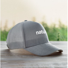 Gorra de béisbol de 5 paneles confeccionada en tejido de cáñamo 100% (370 g/m²) con cierre ajustable con hebilla metálica. Una gorra elegante que mantiene tu cara a salvo del sol. Esta fibra natural y ecológica es resistente a los rayos UV y ayuda a reducir la sudoración debido a la transpirabilidad natural de las fibras. La correa ajustable en la parte posterior está hecha del mismo material de cáñamo e incluye una hebilla de latón de color plateado para un ajuste perfecto. 5 ojales cosidos a juego. Tamaño 7 1/4.