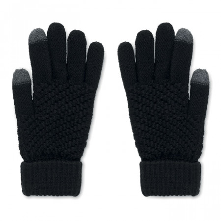 Guantes táctiles para smartphone en RPET con etiqueta para zona de impresión. Mantener las manos calientes durante los fríos días de invierno puede ser un reto cuando se utiliza el smartphone u otro dispositivo táctil. Con estos guantes, fabricados con PET reciclado, resulta mucho más fácil. Tienen un acolchado especial en las puntas de los dedos, para que puedas seguir utilizando las pantallas táctiles sin problemas.