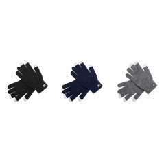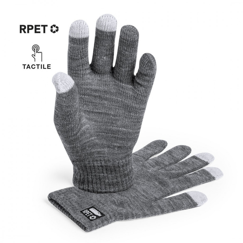 Guantes hechos de plástico reciclado. Contiene en los dedos corazón, índice y pulgar una función táctil para que puedas utilizar el móvil. Talla única de adulto.