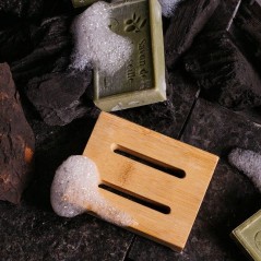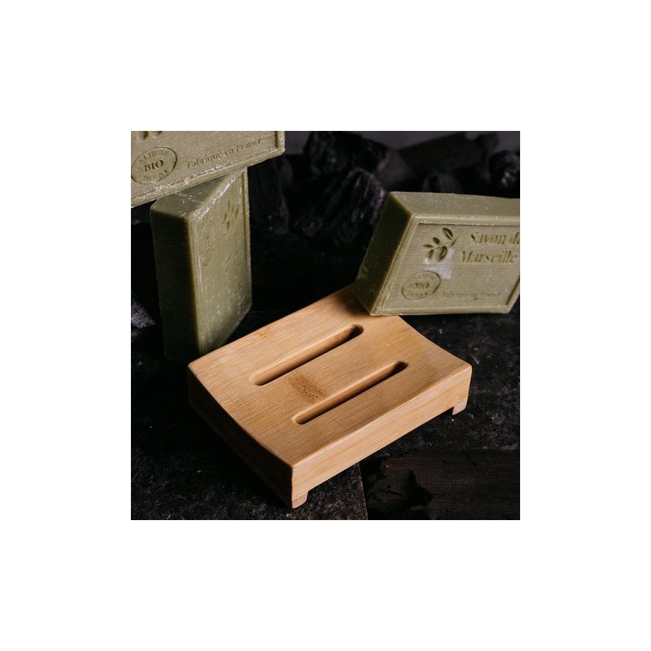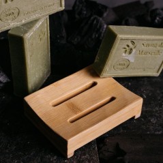 Jabonera fabricada en bambú. Cuenta con certificado FSC.