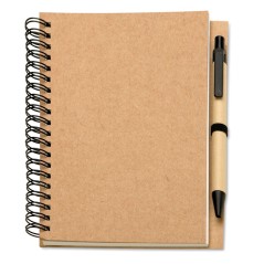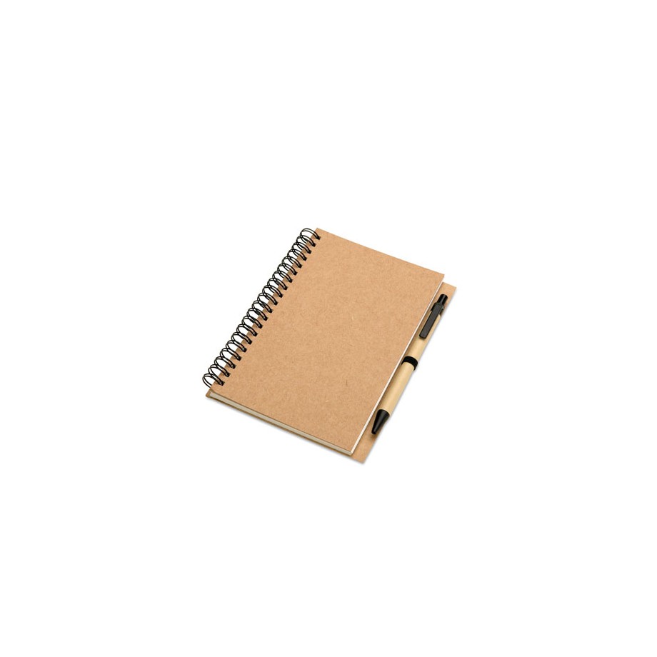 (MK) KC7012 - Libreta reciclada con tapa negra o marrón natural. Incluye 70 hojas de papel reciclado y un bolígrafo reciclado biodegradable de tinta azul.