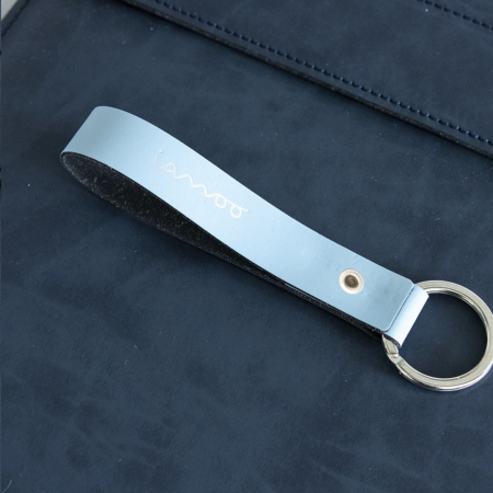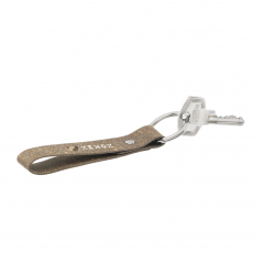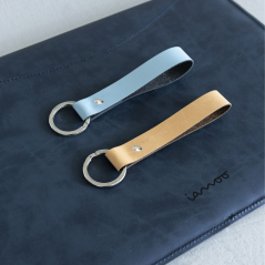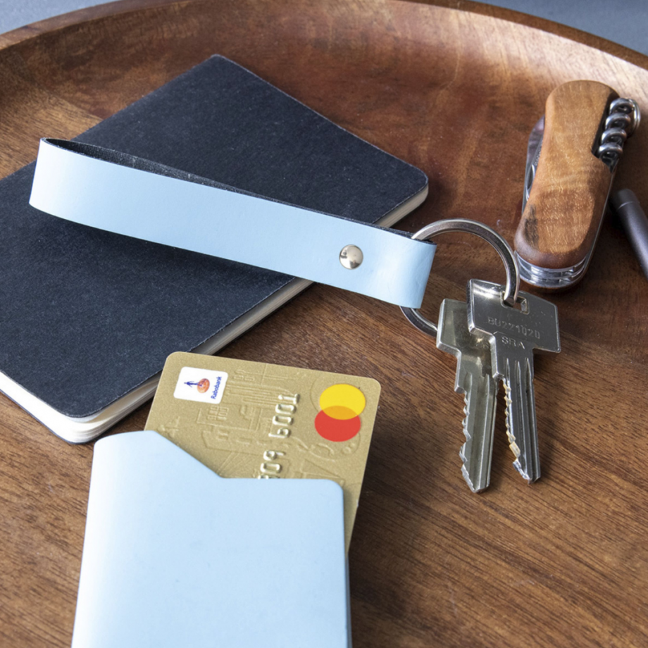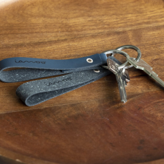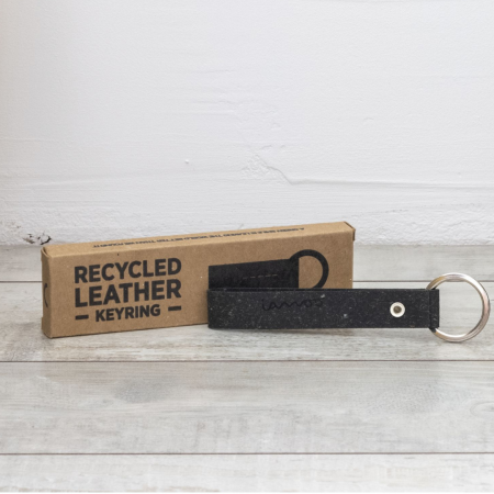 ste llavero está hecho de cuero reciclado. El cuero reciclado está hecho de material recuperado que se recolecta como desecho durante el proceso de producción de zapatos y bolsos. El cuero proviene de Italia, tierra de la moda y productora de muchas marcas de cuero de lujo. El cuero de desecho se recoge, tritura y reconstruye con agua y aglutinantes naturales. En lugar de ser incinerado, el material recibe una segunda vida. Se siente como goma al tacto, tiene una hermosa textura mate y también huele a cuero. La capa superior de color está hecha de un revestimiento de PU a base de agua muy fino.