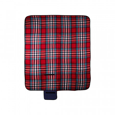Manta de picnic de tamaño familiar, fabricada en material acrílico y diseño de cuadros. Ideal para exteriores, plegable y con asa para fácil transporte. Disponible en tonos rojos y verdes. 130x150cm