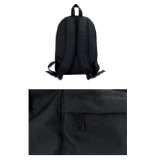 Mochila hecha de 100% algodón reciclado. Todos los detalles están hechos de plástico reciclado, desde el tejido o las correas a la cinta de la cremallera. Por cada mochila se reciclan 17 botellas de plástico.