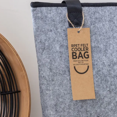 Una nevera portátil con un bonito diseño, fabricada con PET 100 % reciclado.