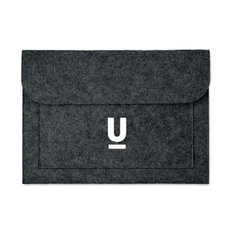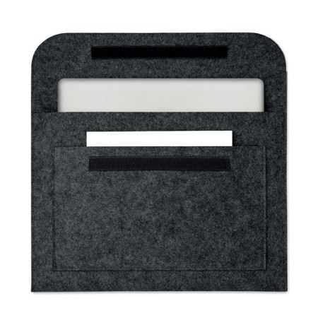 Porta documentos de RPET felpa de 2 mm de grosor, con bolsillo en el frente y cierre de velcro. También puede usarse para ordenador portátil de hasta 15''.
