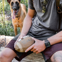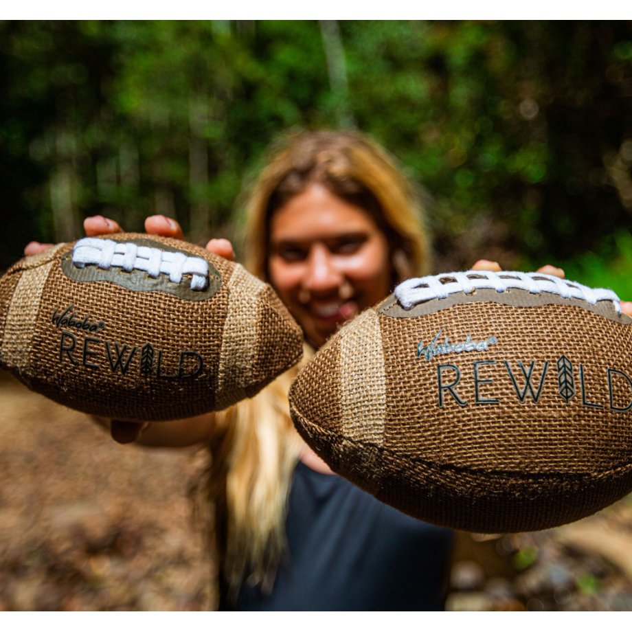 Este balón de fútbol americano de 9,5 pulgadas está fabricado con una combinación de yute, caucho natural y madera. Waboba utiliza materiales que son buenos para el medio ambiente y dona una parte de sus ganancias a organizaciones comprometidas con la protección y preservación del medio ambiente.