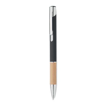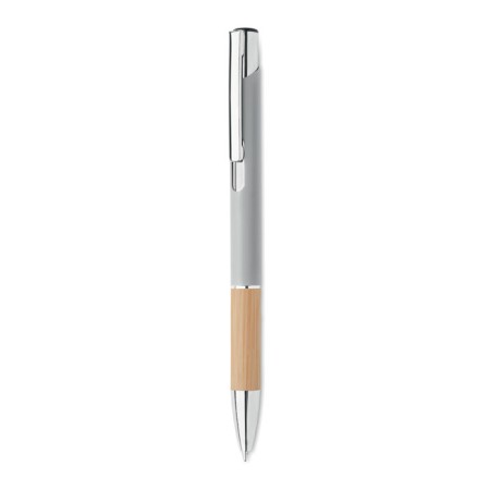MO2159 - Bolígrafo pulsador de aluminio con empuñadura de bambú. Tinta azul.