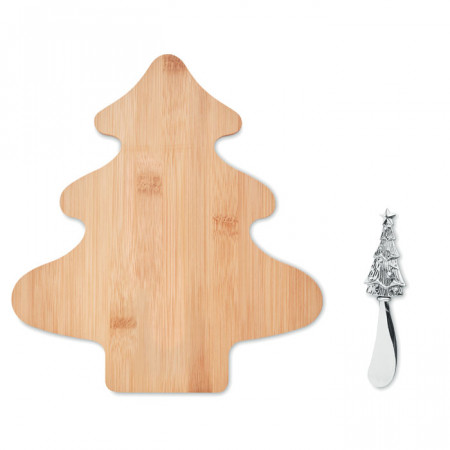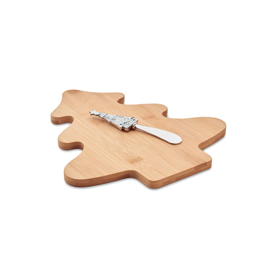 Set tabla de quesos de bambú en forma de árbol con cuchillo de queso en acero inox.