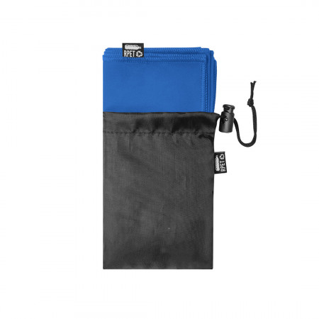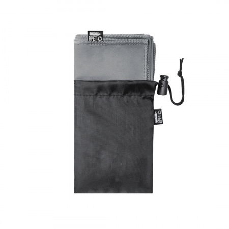 Toalla absorbente de línea nature y en resistente poliéster RPET, elaborado a partir de plástico reciclado para así fomentar la reutilización de residuos plásticos y contribuir a la sostenibilidad del planeta. De 30x80cm, disponible en variada gama de colores. Presentada en práctica bolsa de transporte de RPET, con cierre de cordón y accesorio de ajuste. Distintivos RPET en etiquetas exteriores (toalla y bolsa).