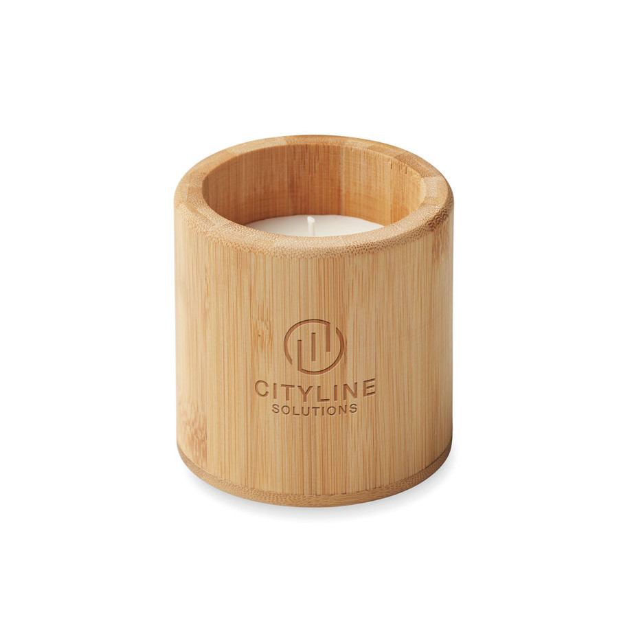 Vela de cera vegetal y envase de bambú