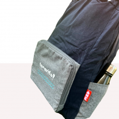 Esta mochila plegable personalizable y reciclada, es la mejor amiga de todos los viajeros, excursionistas, estudiantes, festivaleros etc. Se genera a partir de 16 botellas de deshechos de plastico. Es ligera práctica y además súper cómoda, gracias a sus resistentes asas. Es ideal como equipaje de mano adicional. Contiene un boslillo en el exterior que permite doblarla y guardarla para que la puedas llevar en el bolso o bolsillo.
