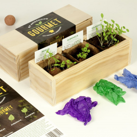 Kit autocultivo gourmet Para los apasionados de la gastronomía. Con este kit podrás cultivar 3 hierbas aromáticas indispensables para los amantes de la... Más información